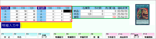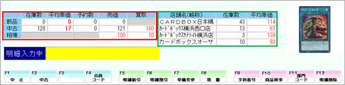 タイプBは選択行の商品の「商品在庫、平均単価、売価、買取、基準価格」が左側に表示されます。