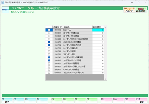 【グループ店舗表示設定】でレジ画面で表示するグループ店舗の設定をします。