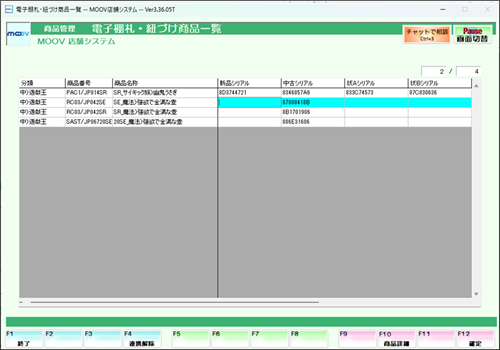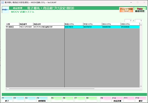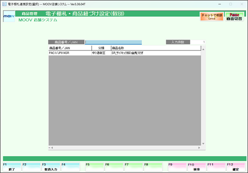 電子棚札と紐付けする商品の番号を入力し、【F12:確定】を押下します。