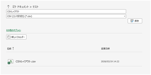 保存形式をCSV(コンマ区切り)で任意の場所に保存します。