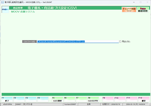 商品紐づけ設定(CSV取込)に戻り、【F5:CSV選択】を押下し、作成したCSVを選択し、更新します。