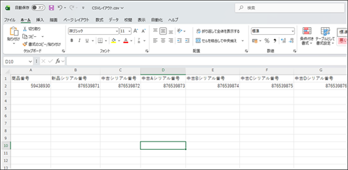 任意の場所に保存したCSVファイルを開きます。商品紐づけ設定のCSVレイアウトに沿って入庫情報を入力します。